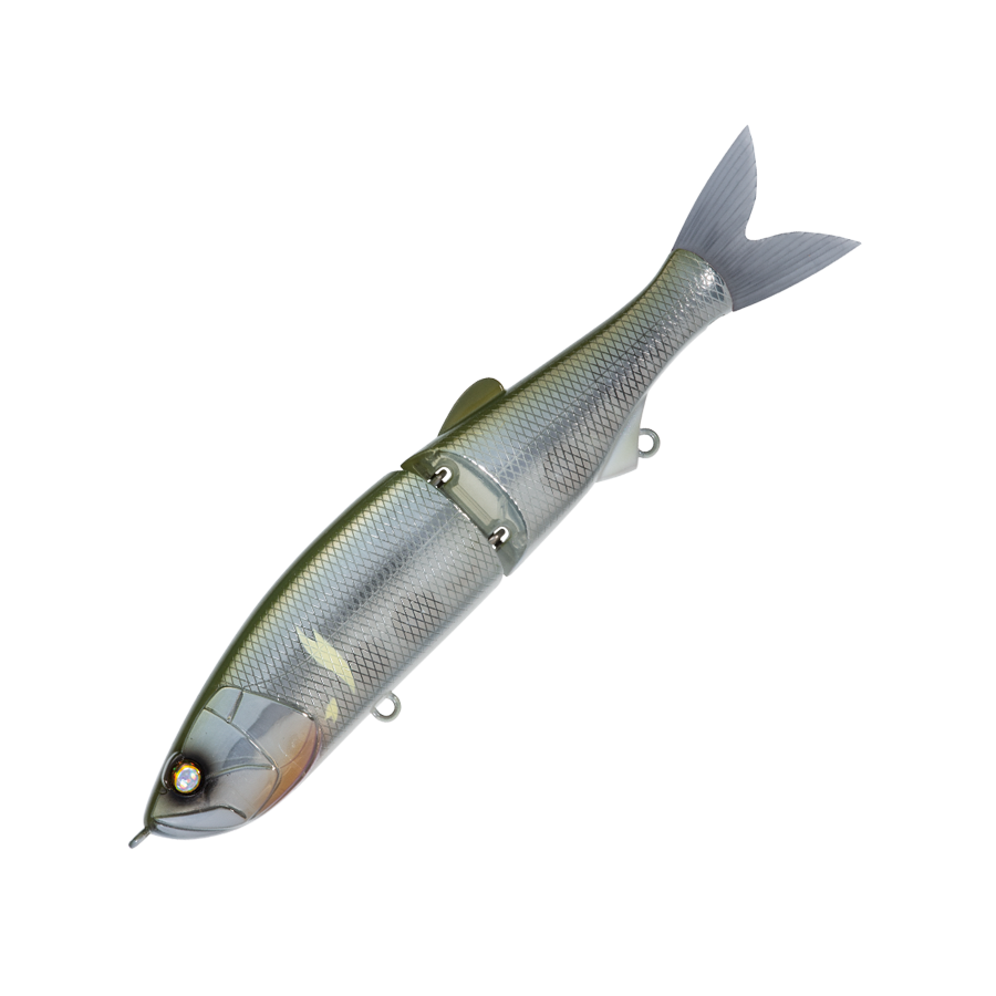 WHIPLASH FACTORY's first jointed lipless minnow. It swims seductively in a wide slalom with a short travel distance during retrieval, and its movement is also transmitted to your hand. With a light twitch, it darts left and right, and with fine continuous operation, it develops a writhing action under the water surface, driving the target crazy. The body thickness is set to 1.5 mm, assuming a strong target with teeth and jaws. The hook is one size larger than the general model of the same type, and the hook-up rate is also improved.
