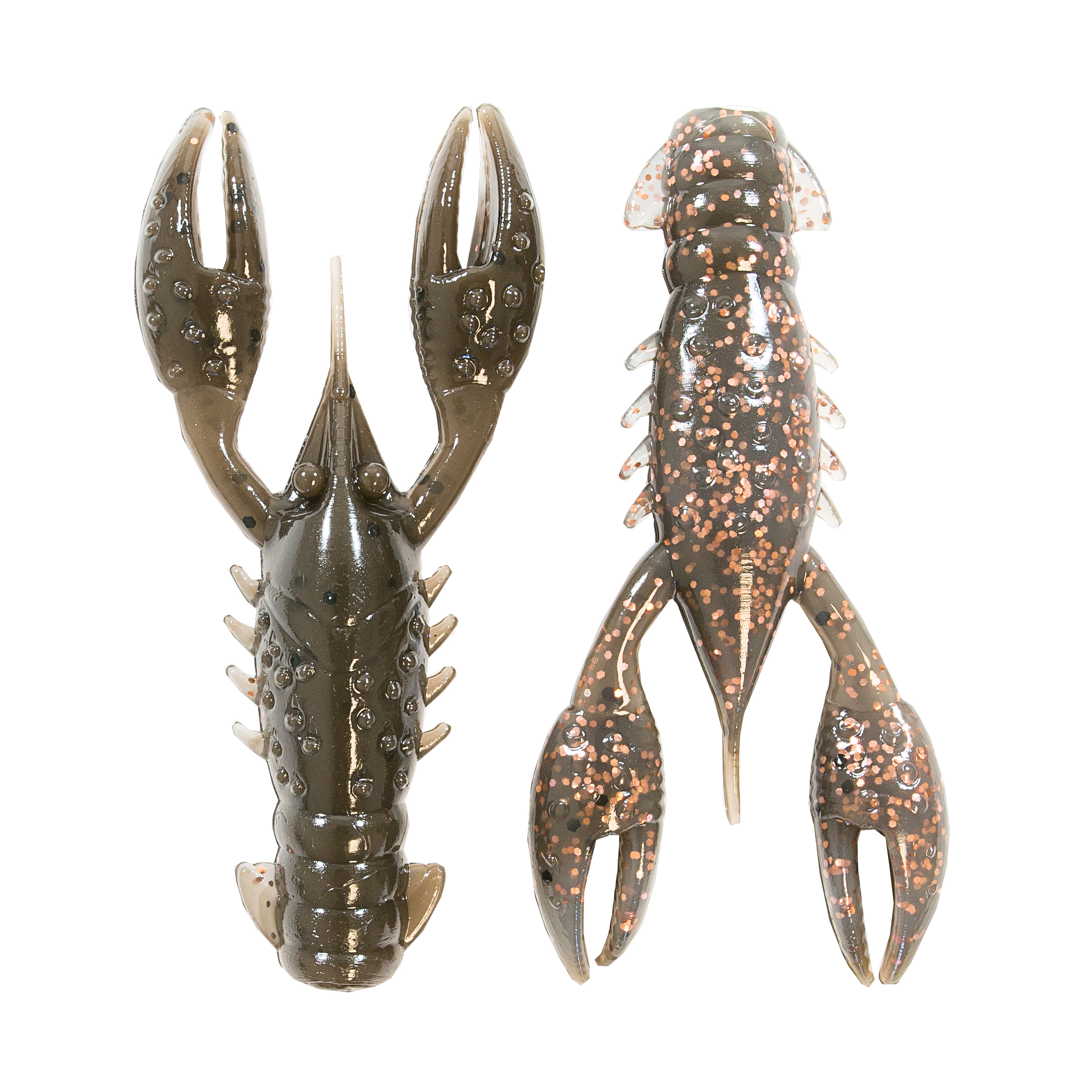• Bulbous, buoyant claws float at rest, mimicking the natural defensive posture of a crayfish